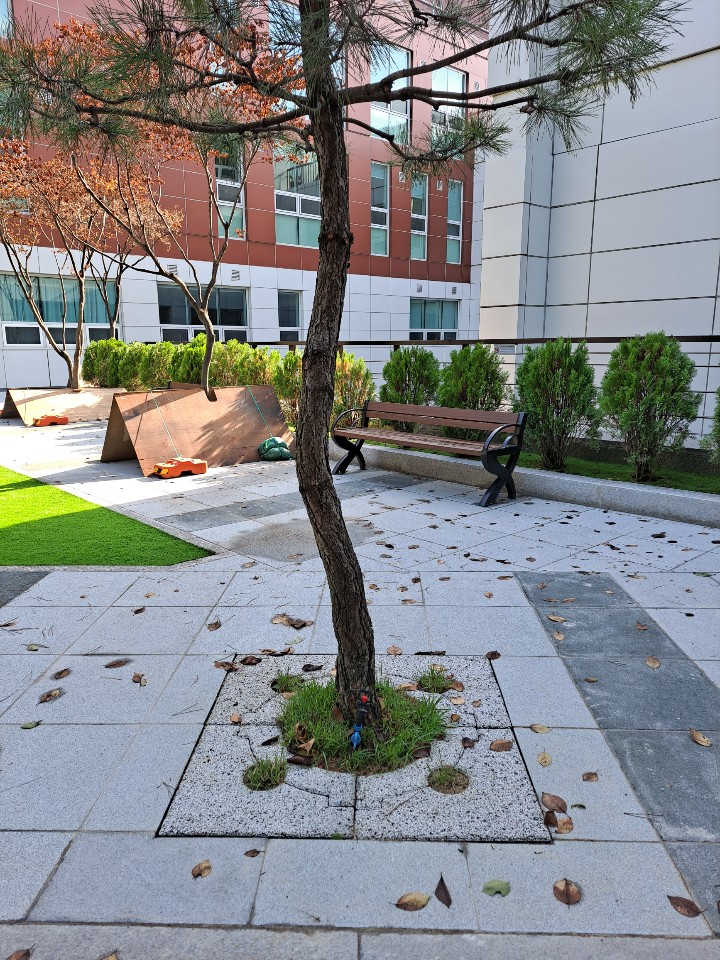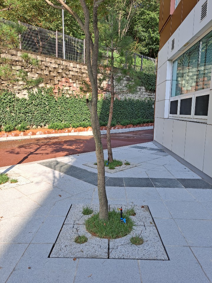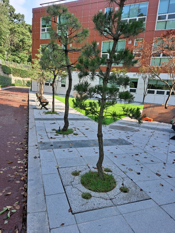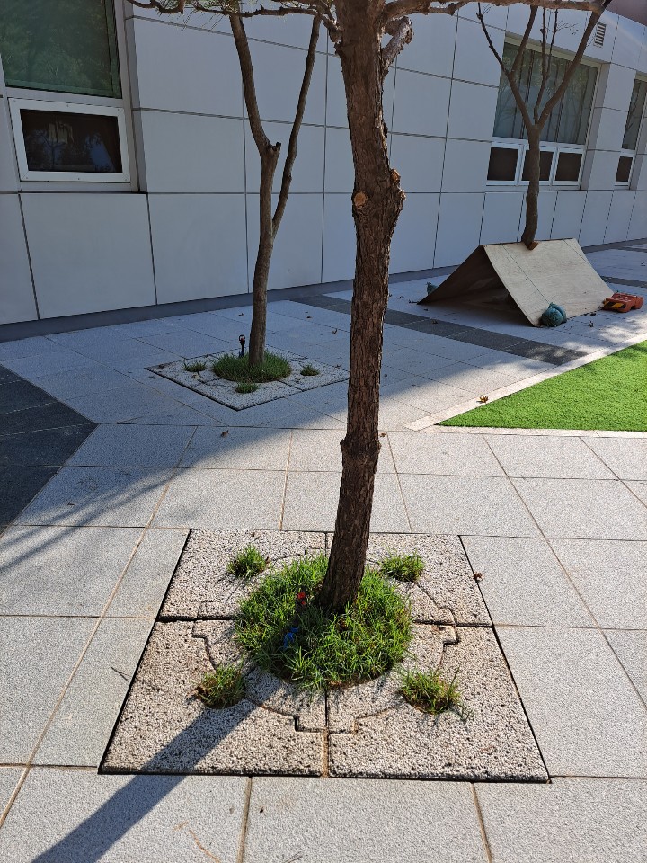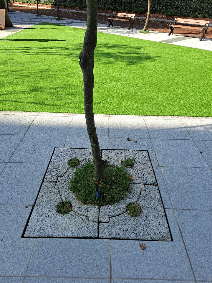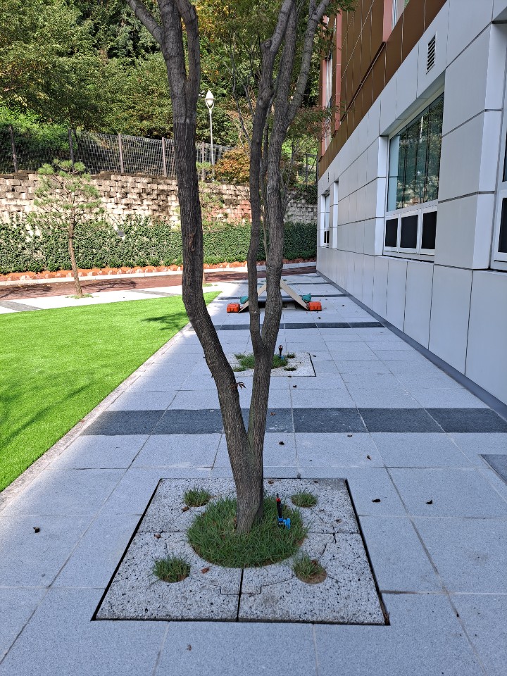 외국인학교 가로수보호덮개 설치 후 ~ 판석포장과 가로수보호덮개 만남.