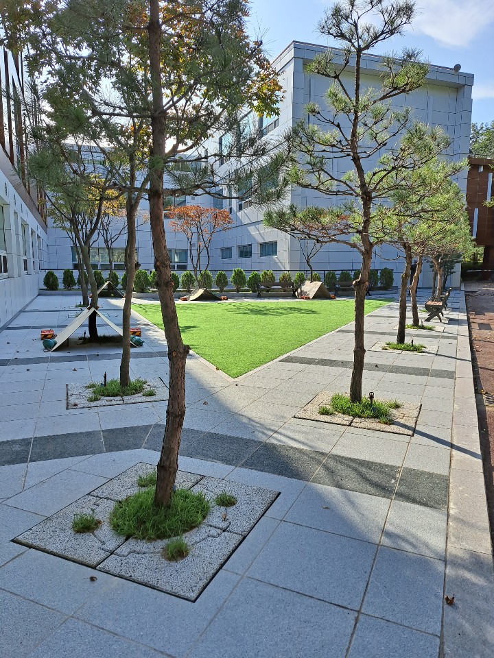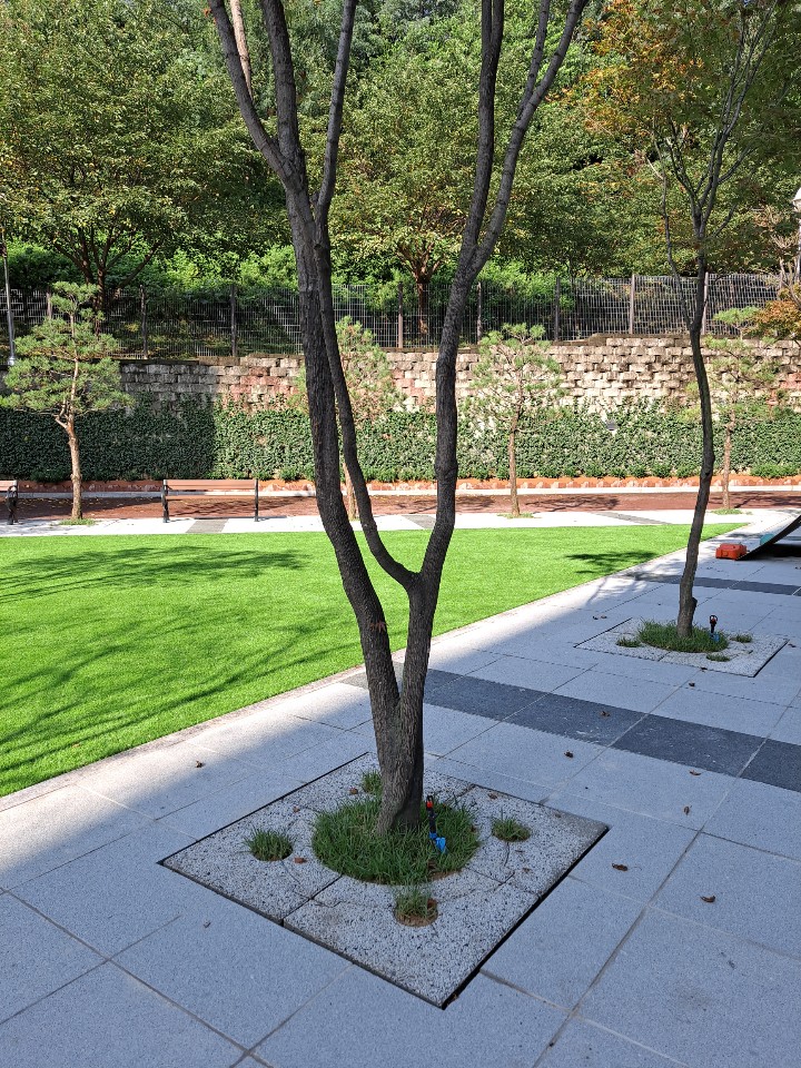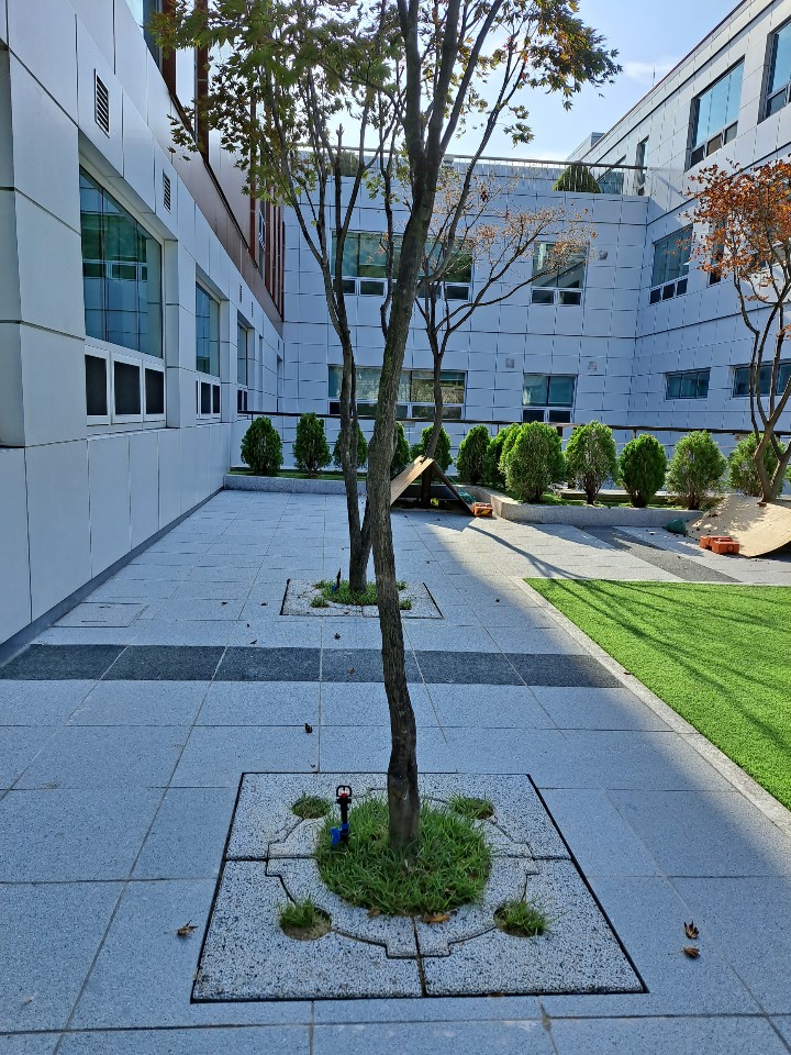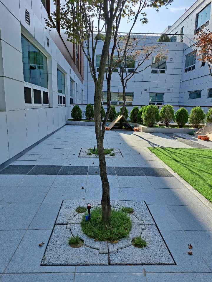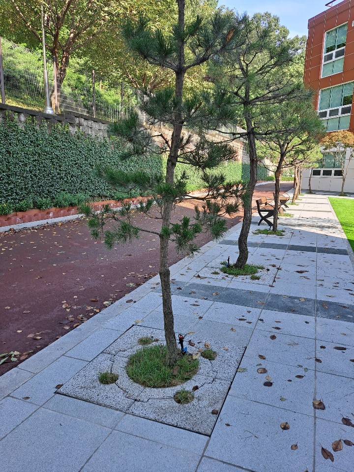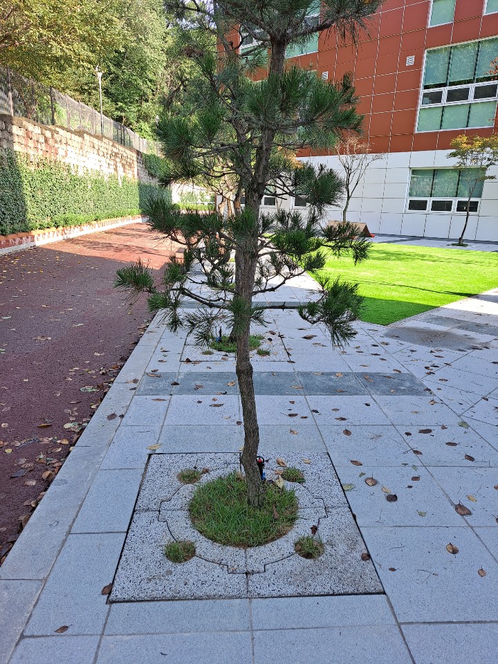 외국인학교 가로수보호덮개 설치 후 ~ 판석포장과 가로수보호덮개 만남.