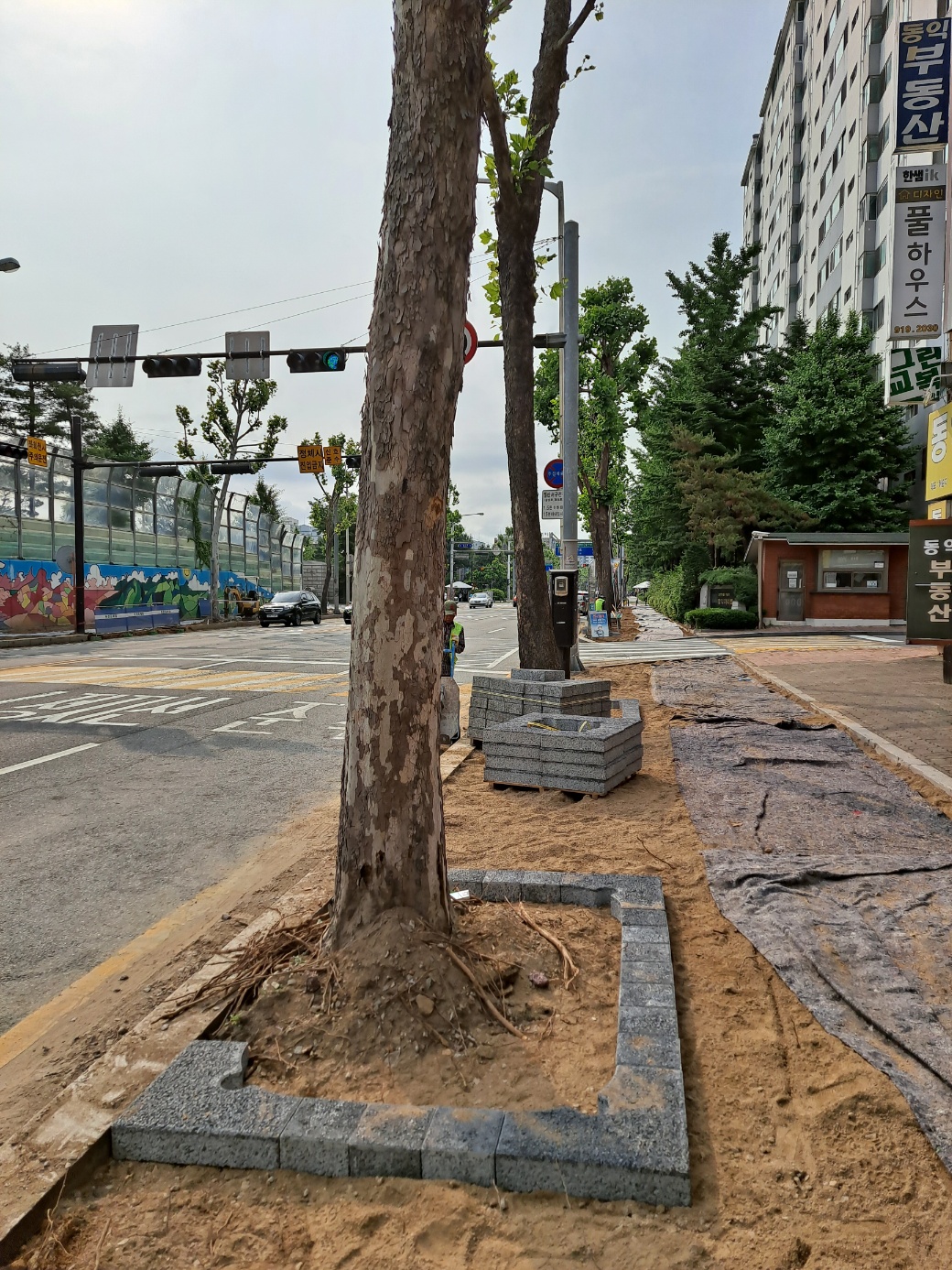 장수가로수보호판 설치공사중 !!!