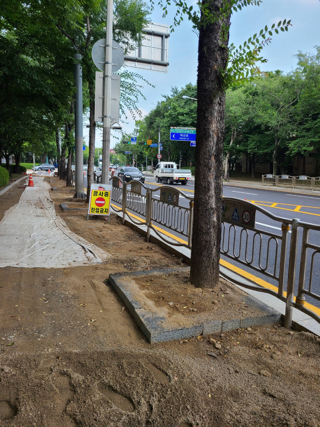 장수가로수보호덮개 설치 공사중~~~