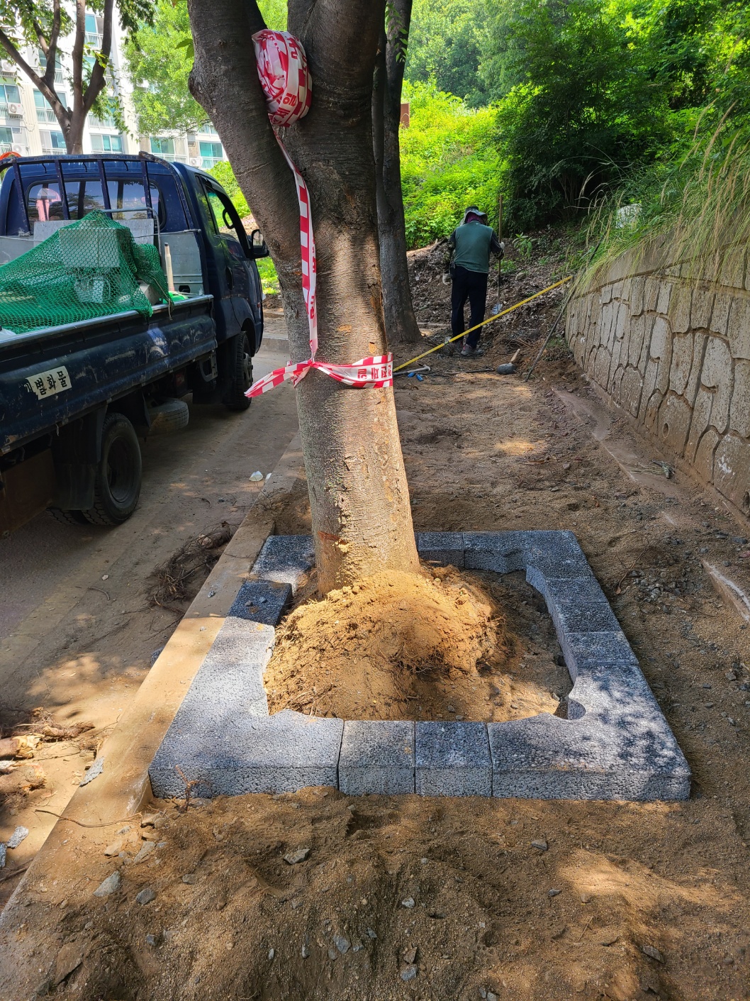 ♣ 경사로 및 굴곡진 보행로 설치 가능한 가로수보호블럭.