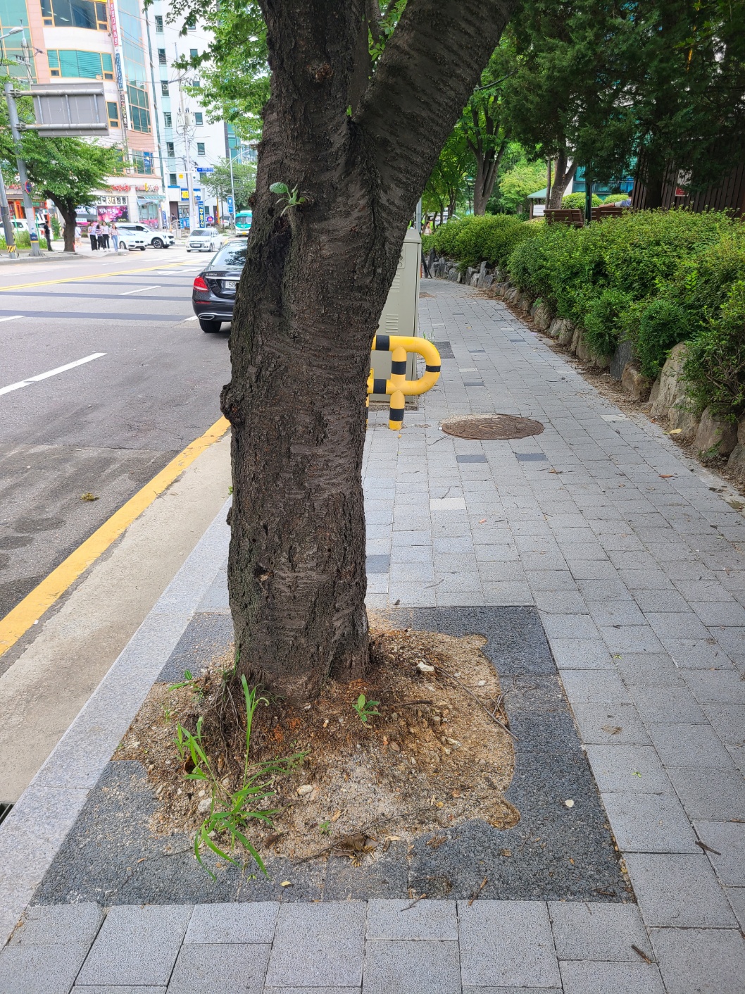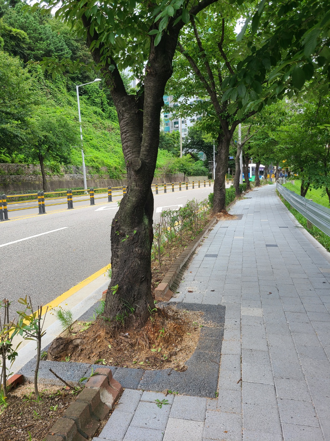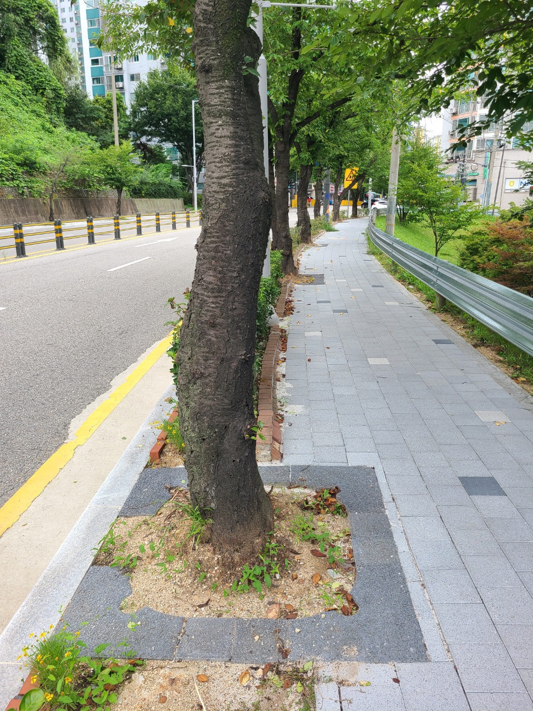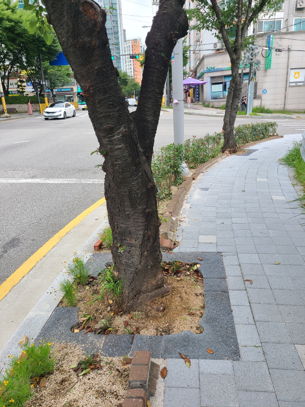 시청후문 둘레길 가로수 및 띠녹지 가로수덮개 설치 후 장마 / 보행로 확보 ~~~~