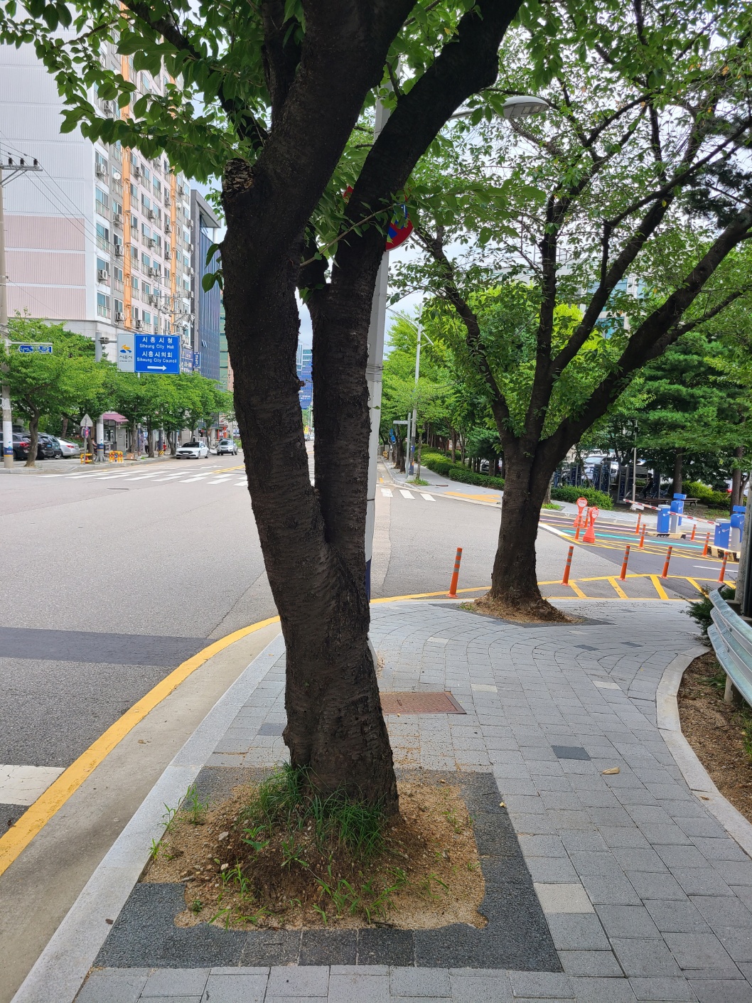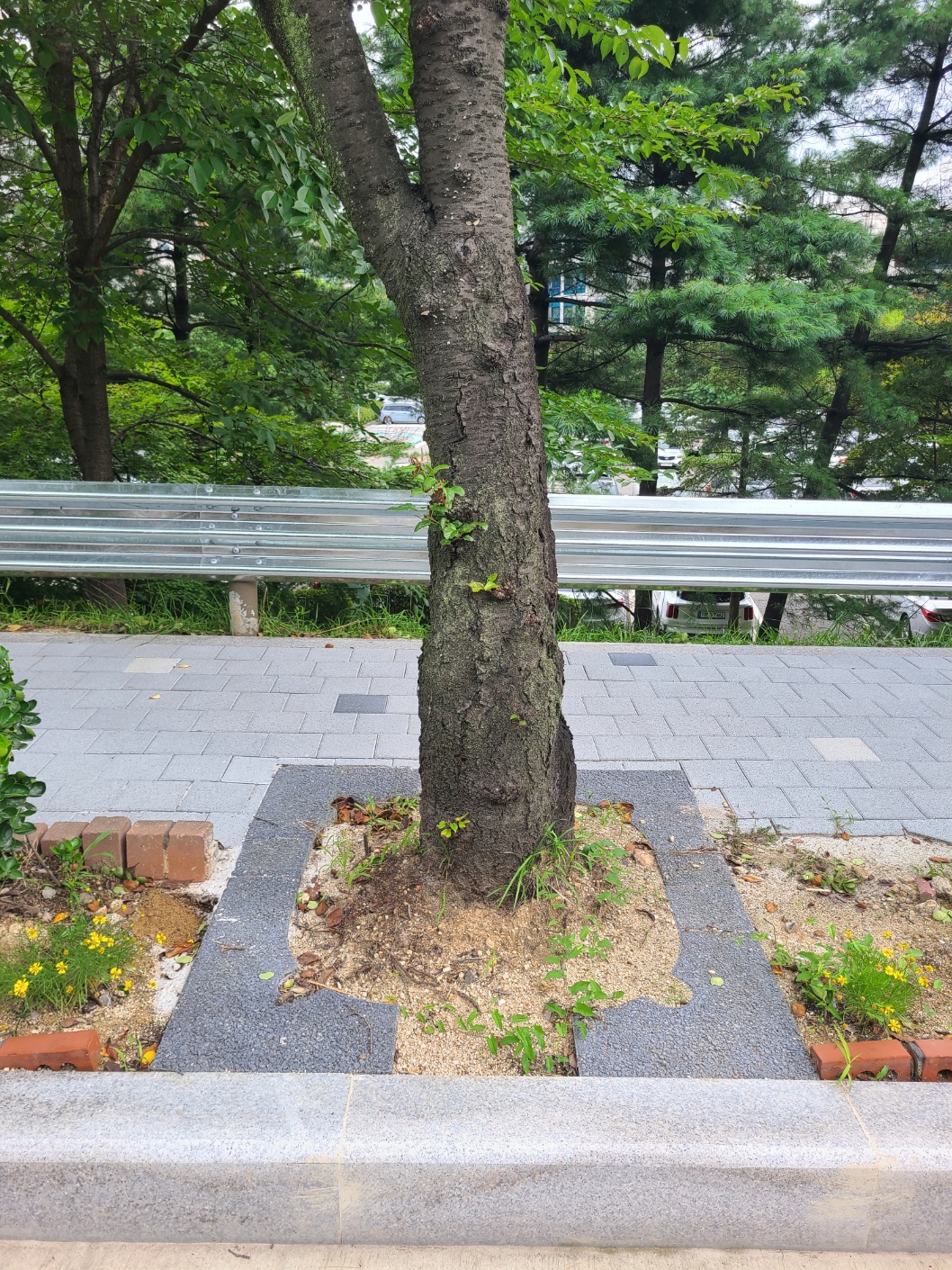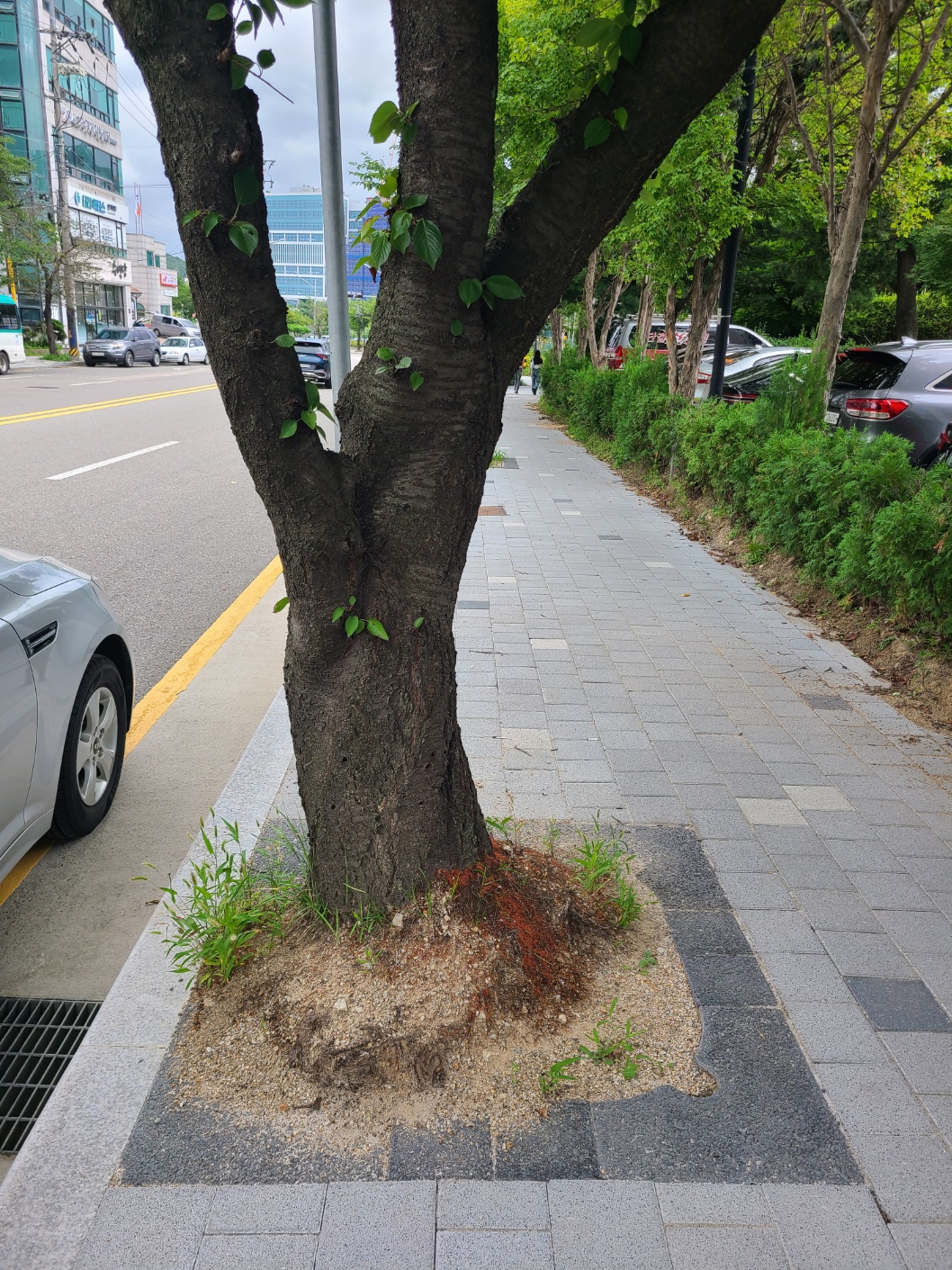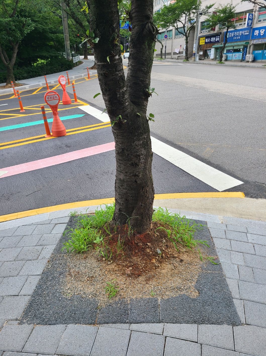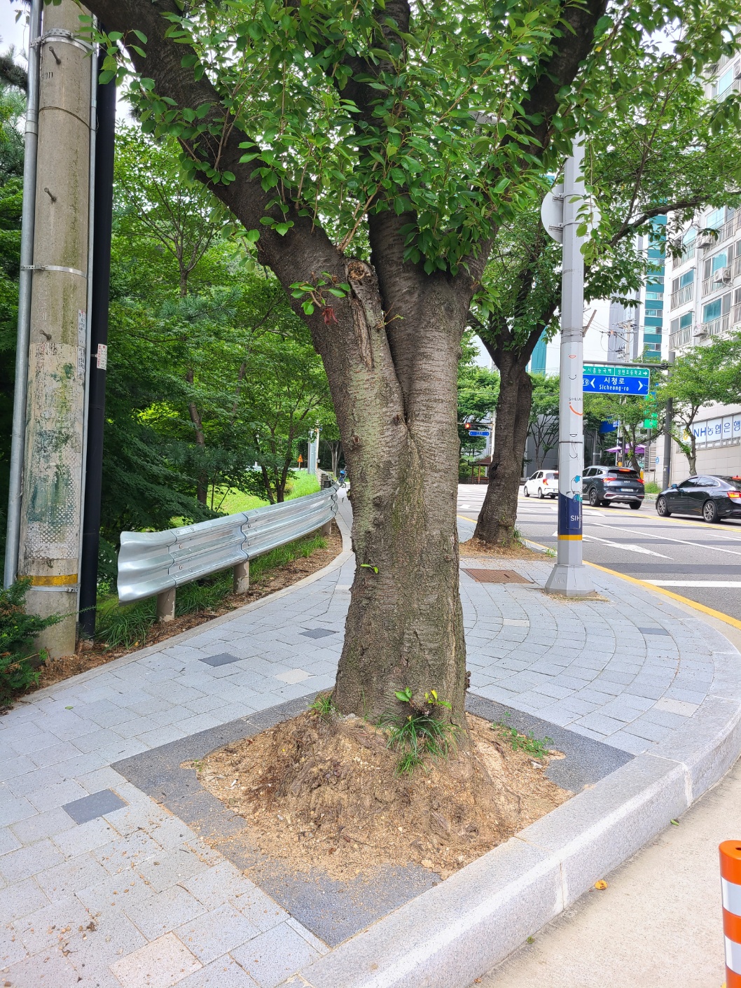 시청후문 둘레길 가로수 및 띠녹지 가로수덮개 설치 후 장마 / 보행로 확보 ~~~~