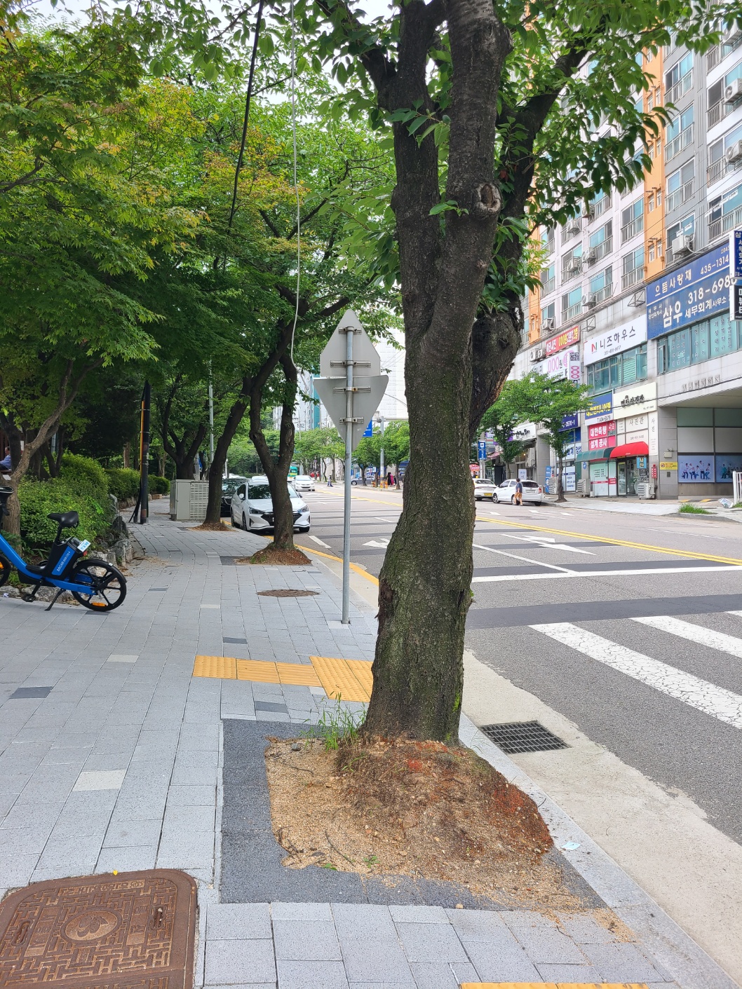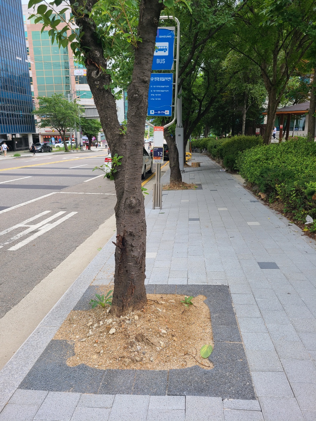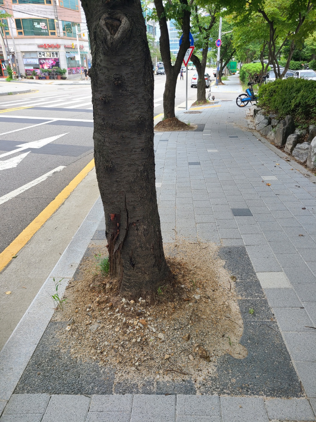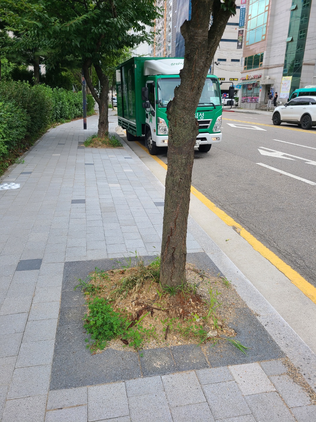 시청후문 둘레길 가로수 및 띠녹지 가로수덮개 설치 후 장마 / 보행로 확보 ~~~~