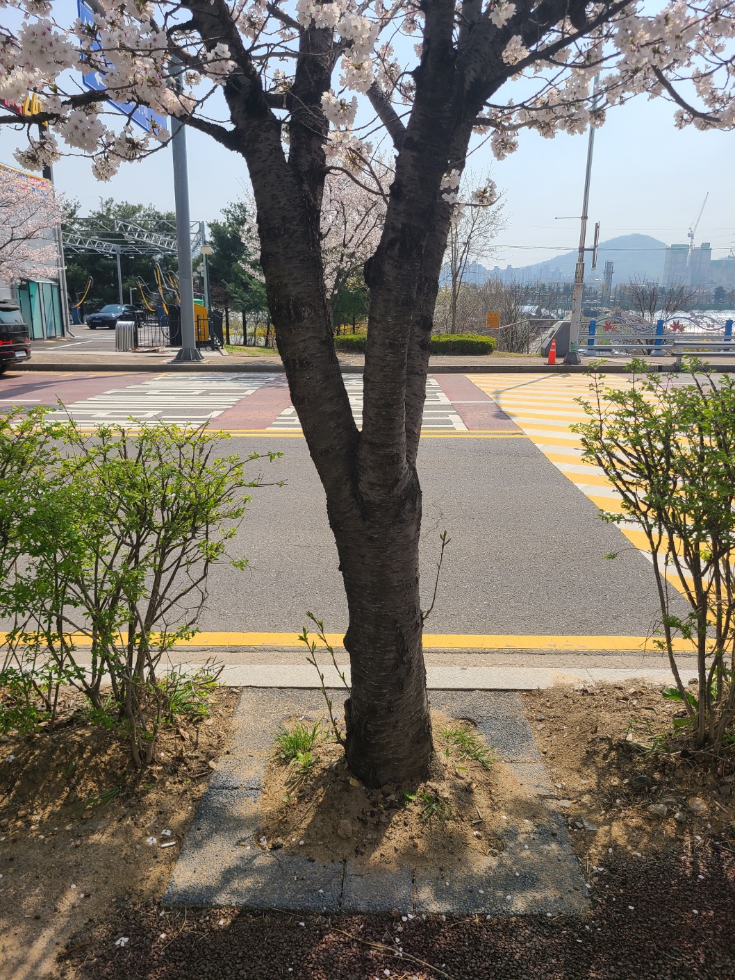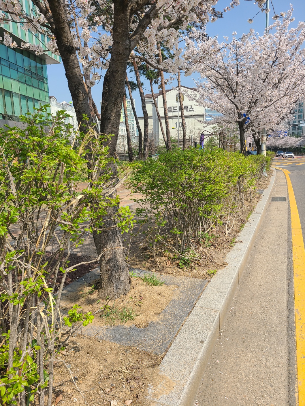 띠녹지구간 벚꽃 가로수길 교체 공사 후 첫 봄 맞이 모습입니다.