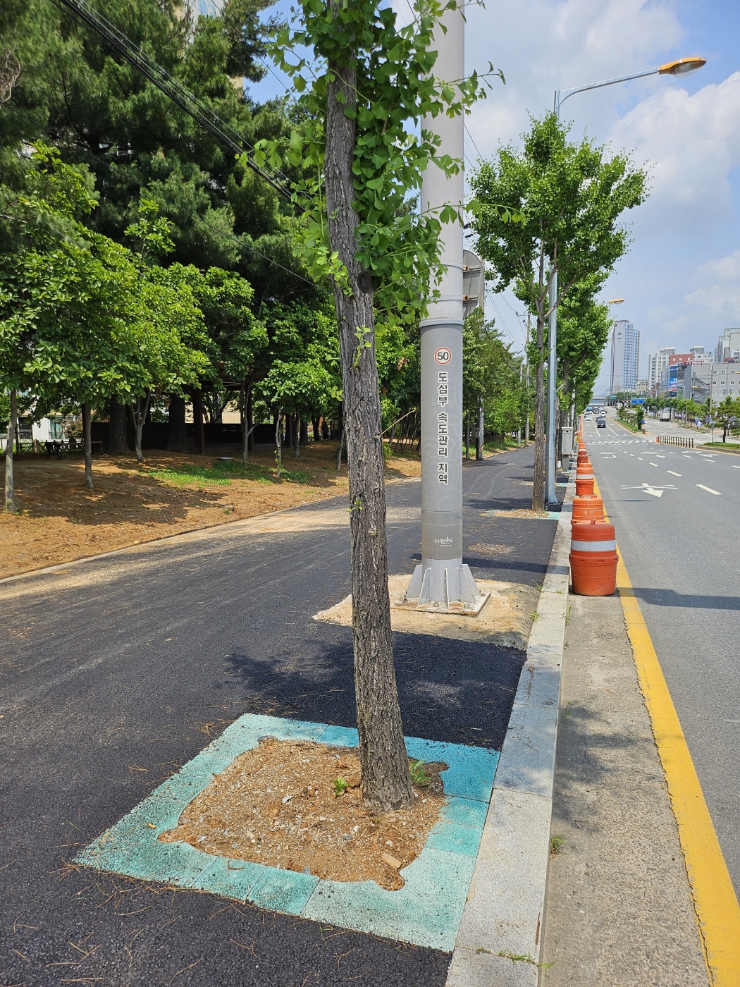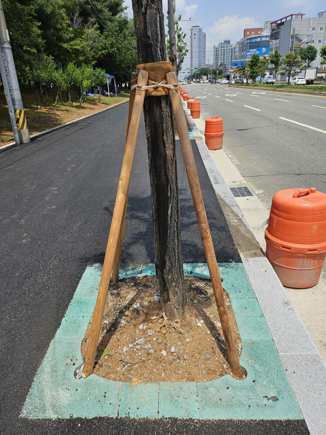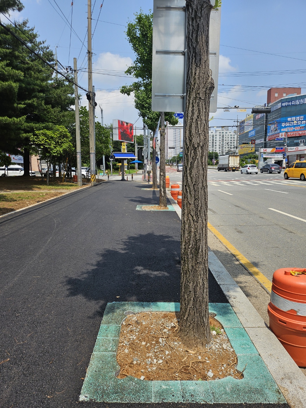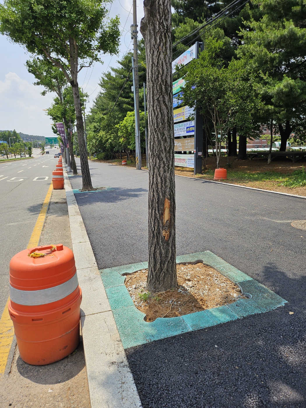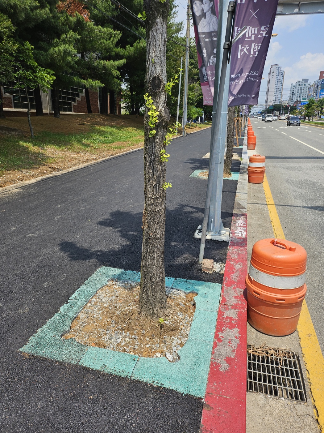 "보행자와 차량운전자의 안전 경계를 위한 칼라 가로수보호판 적용"