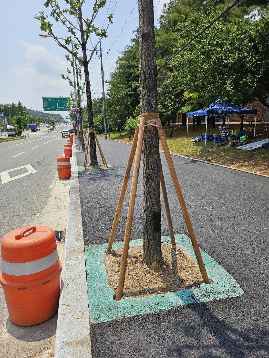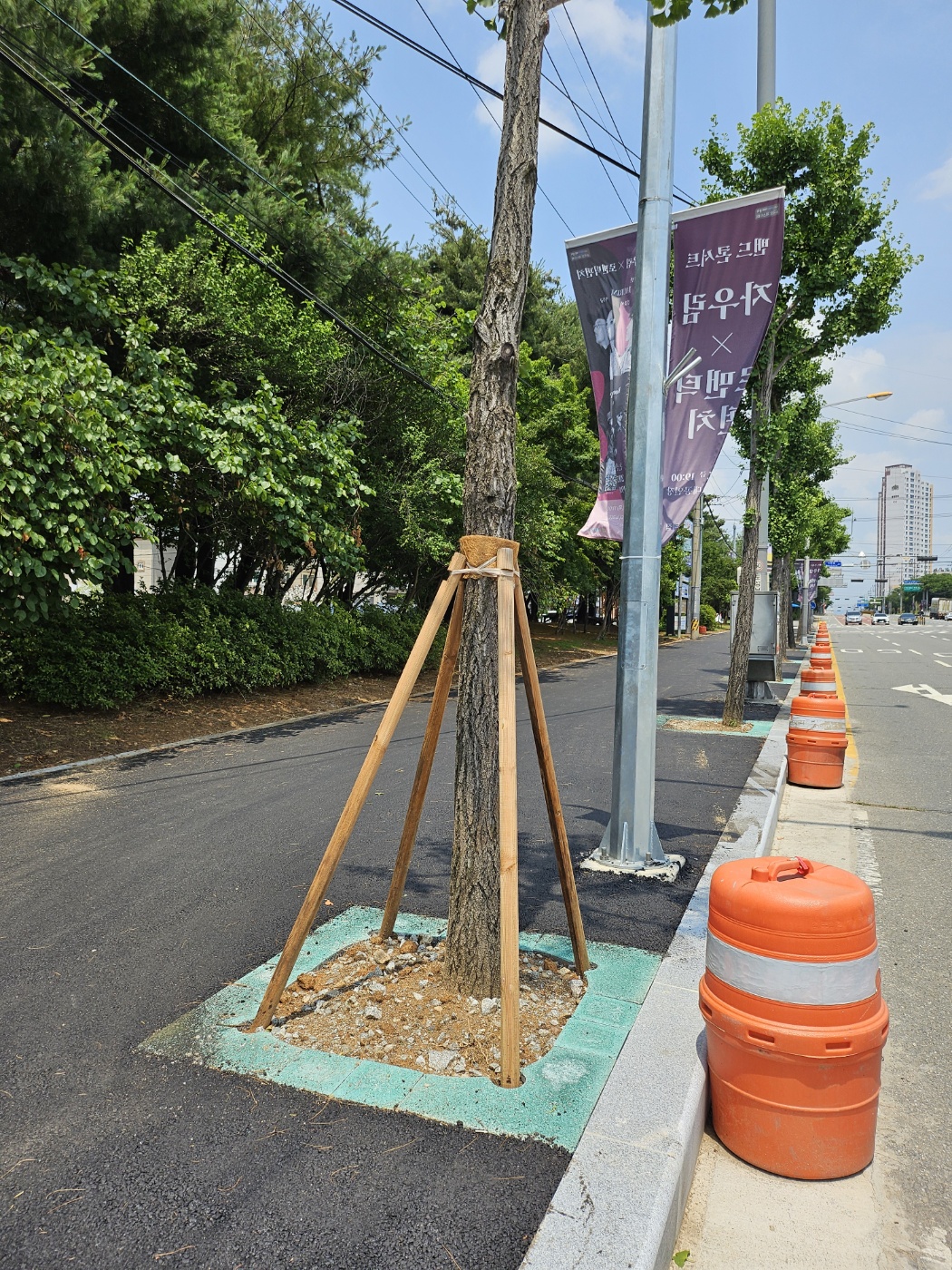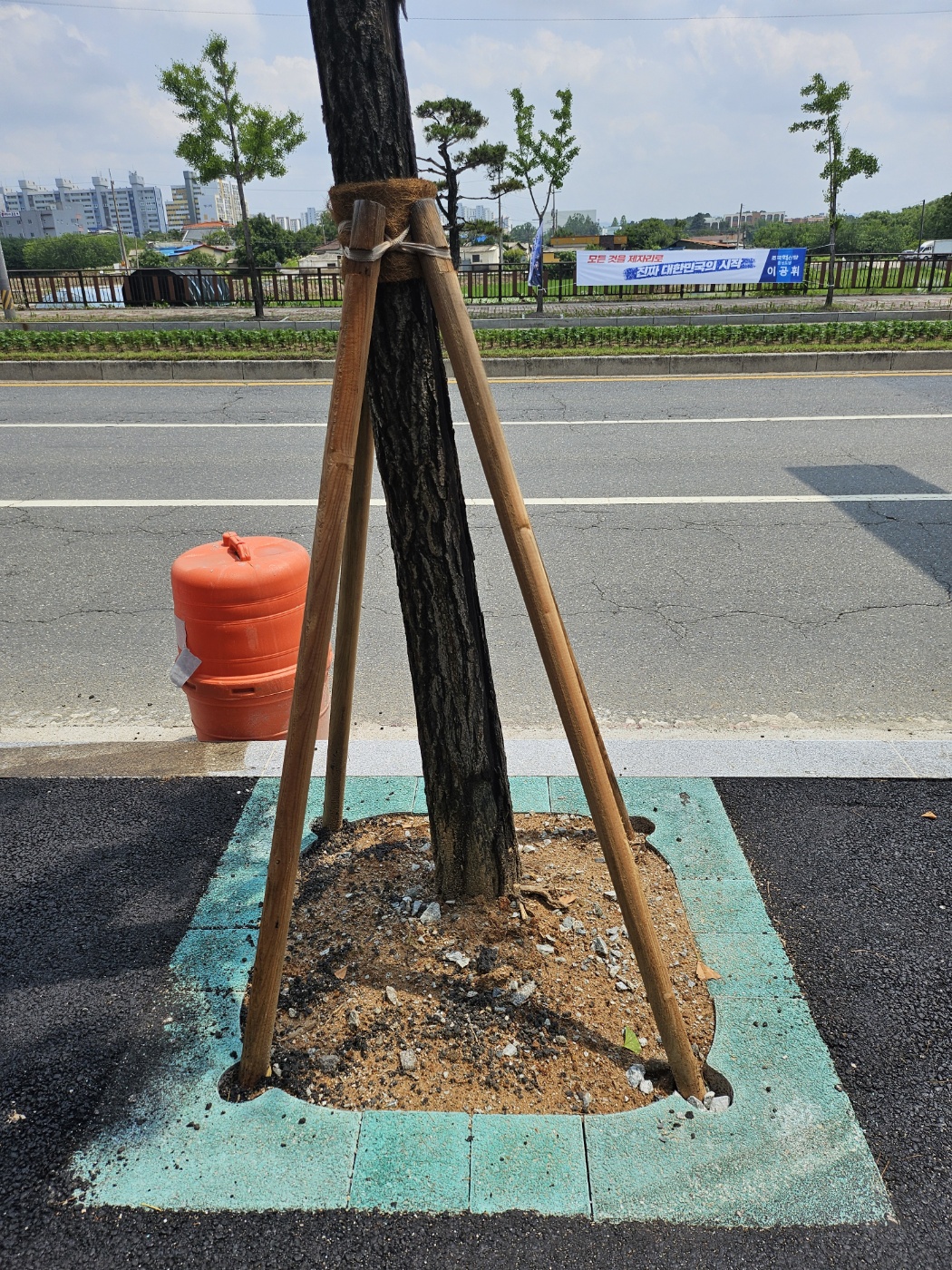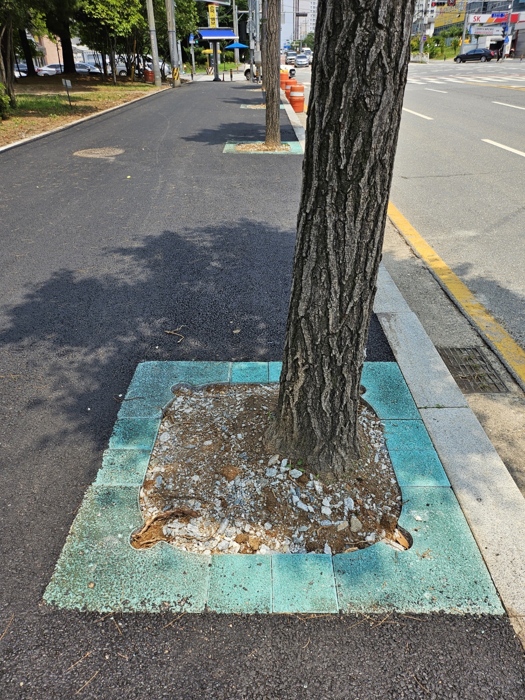 "보행자와 차량운전자의 안전 경계를 위한 칼라 가로수보호판 적용"