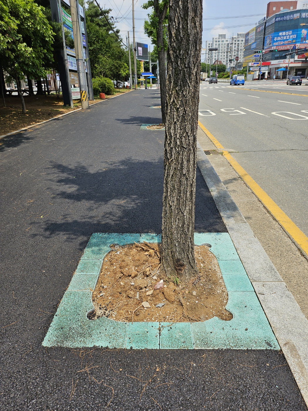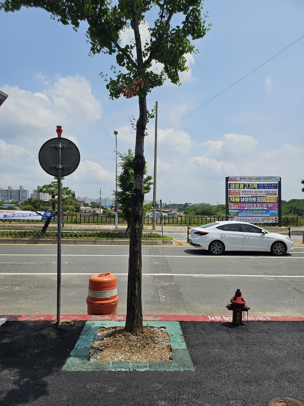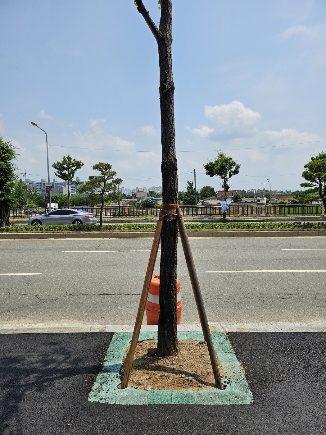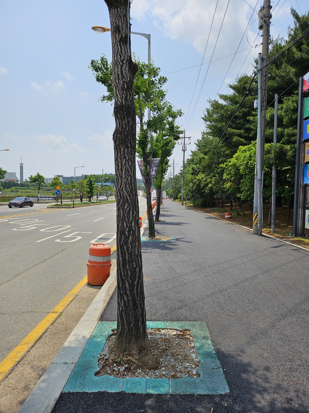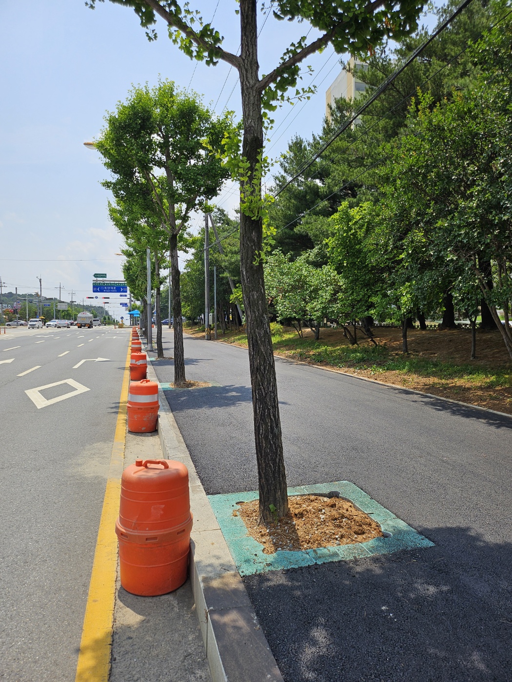"보행자와 차량운전자의 안전 경계를 위한 칼라 가로수보호판 적용"
