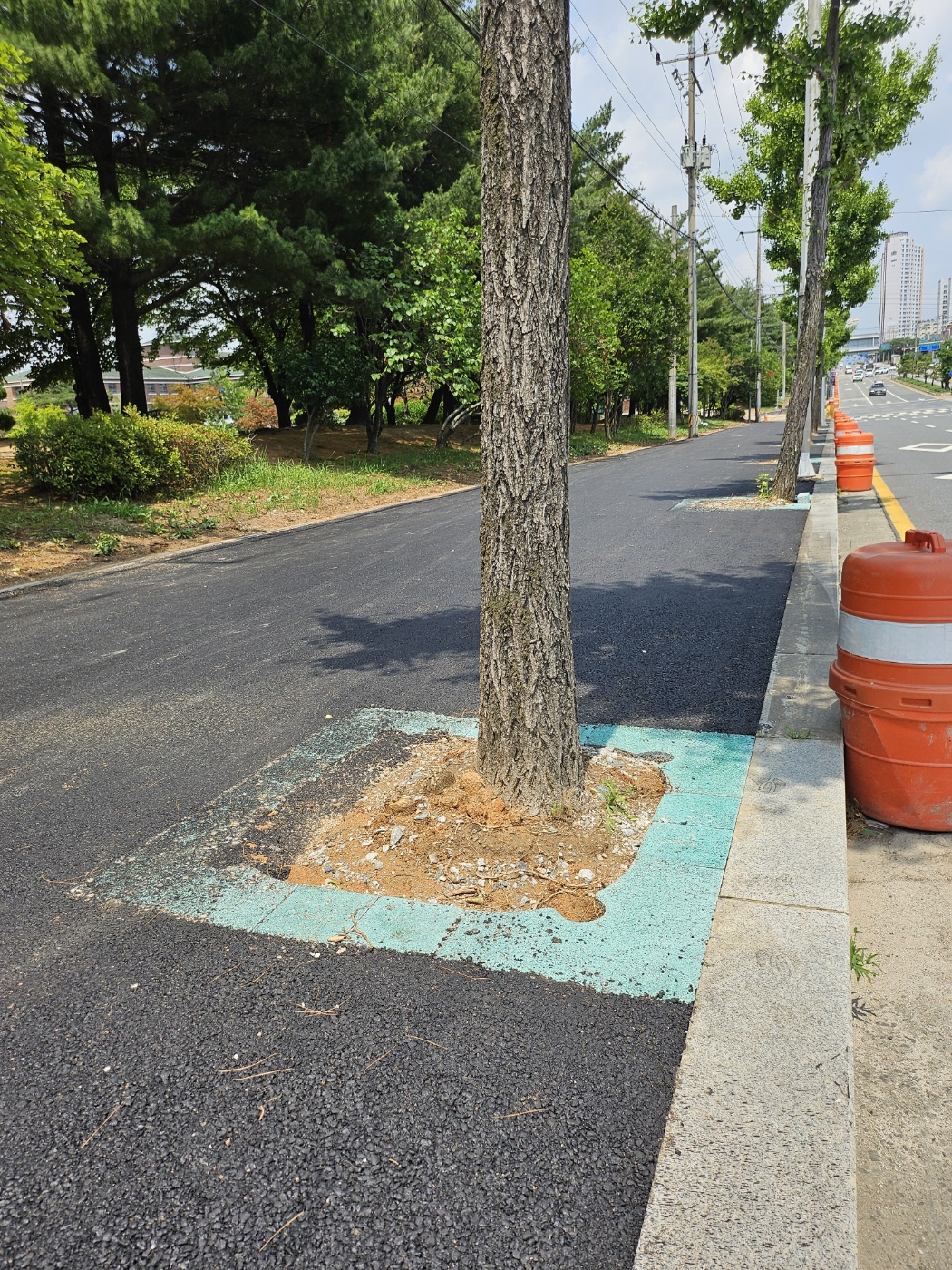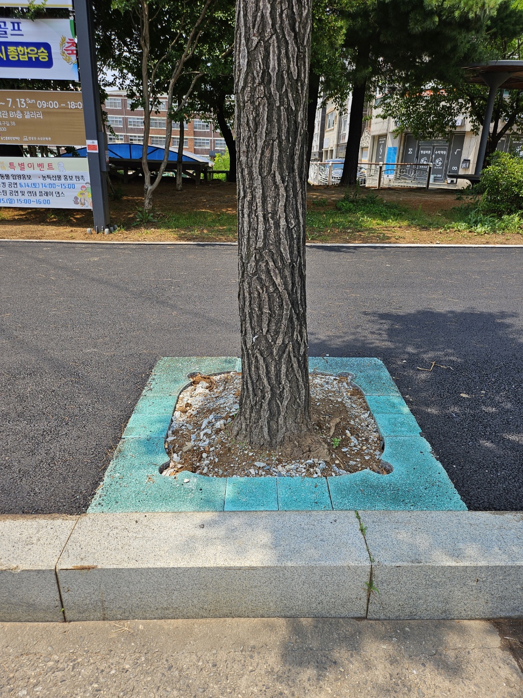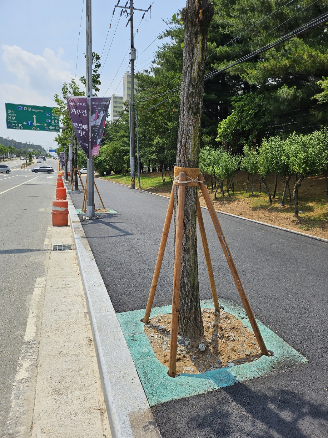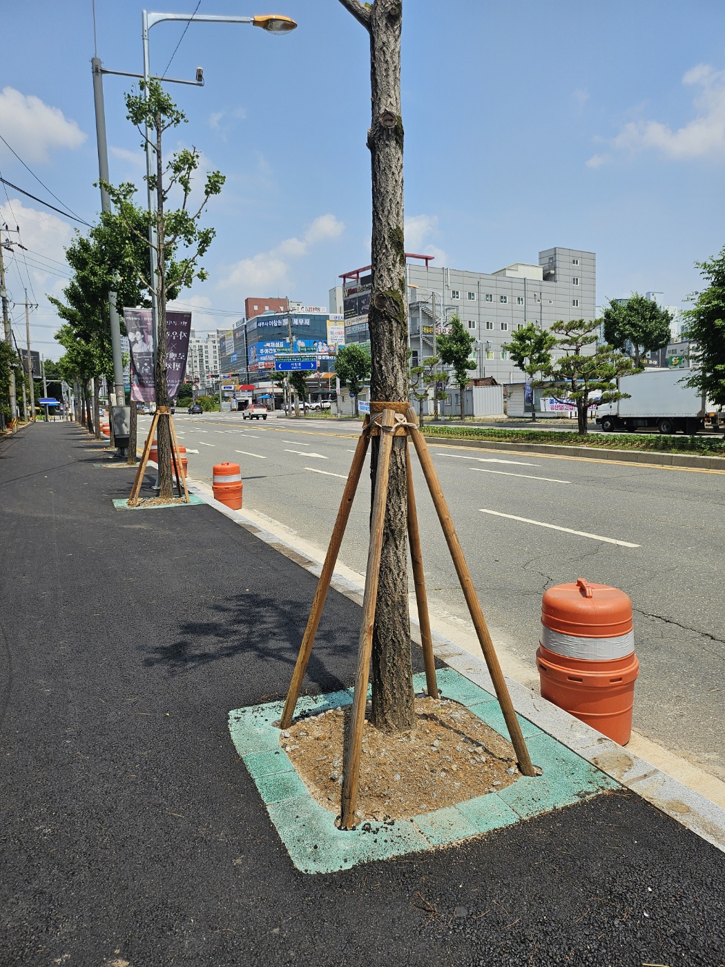 "보행자와 차량운전자의 안전 경계를 위한 칼라 가로수보호판 적용"