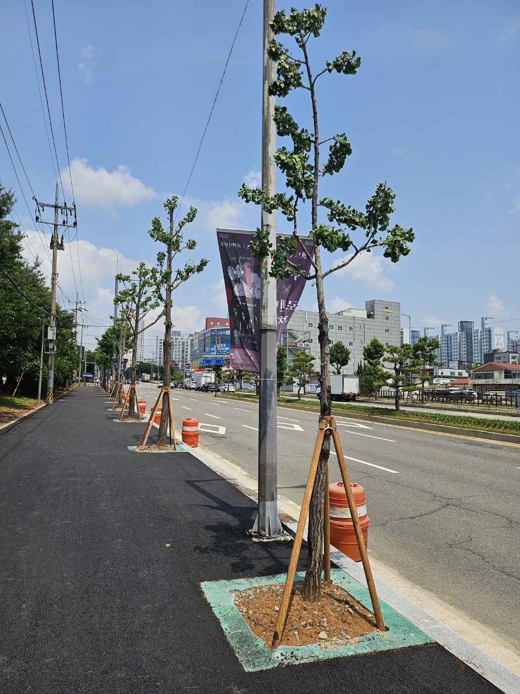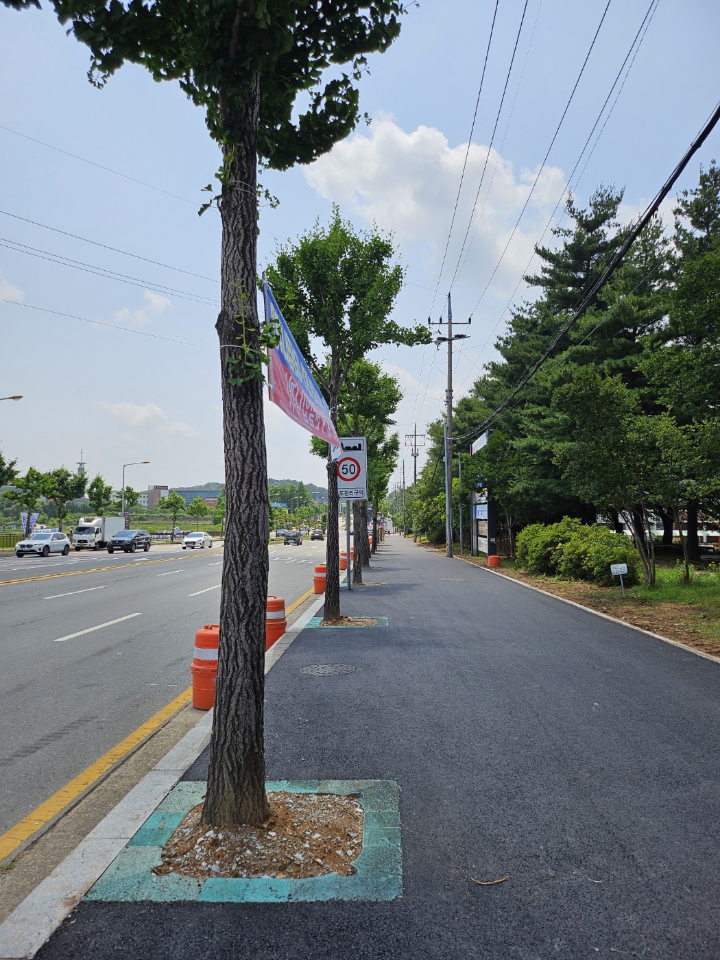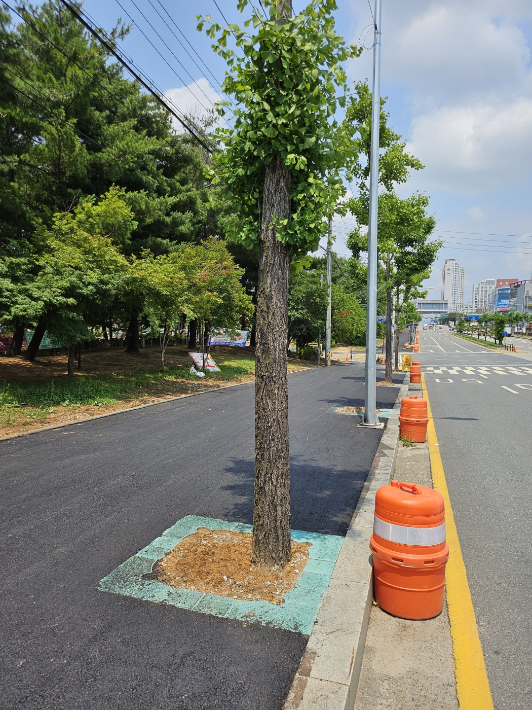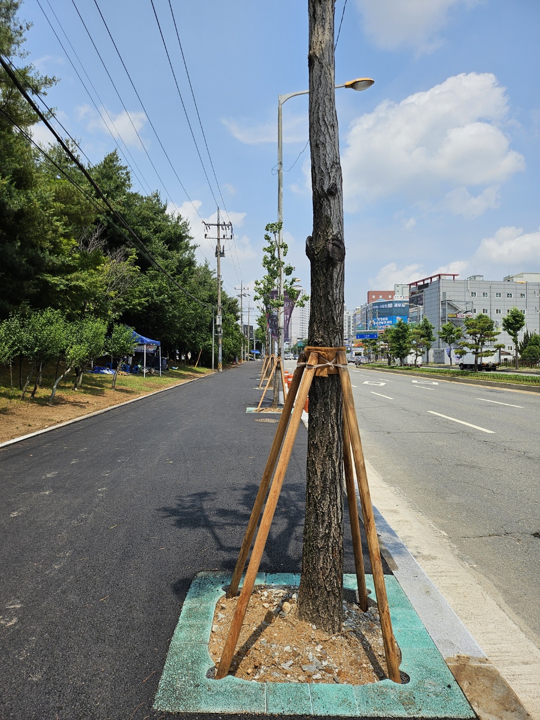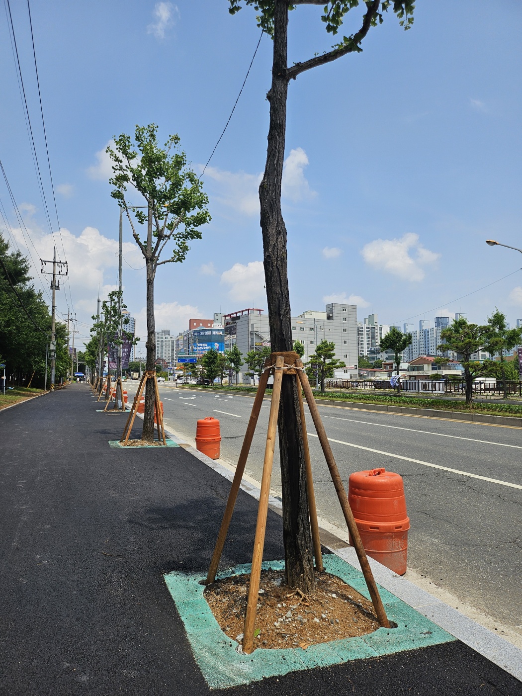 "보행자와 차량운전자의 안전 경계를 위한 칼라 가로수보호판 적용"