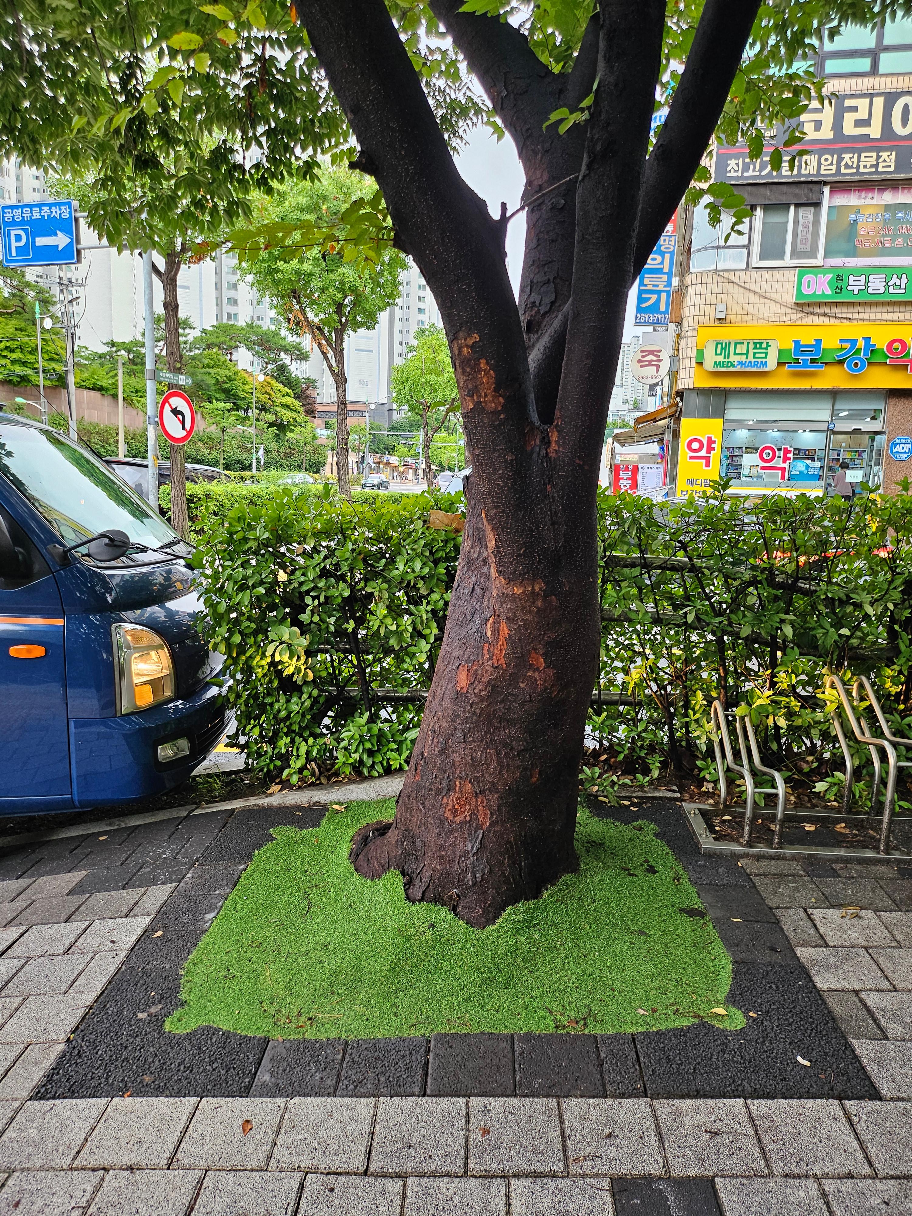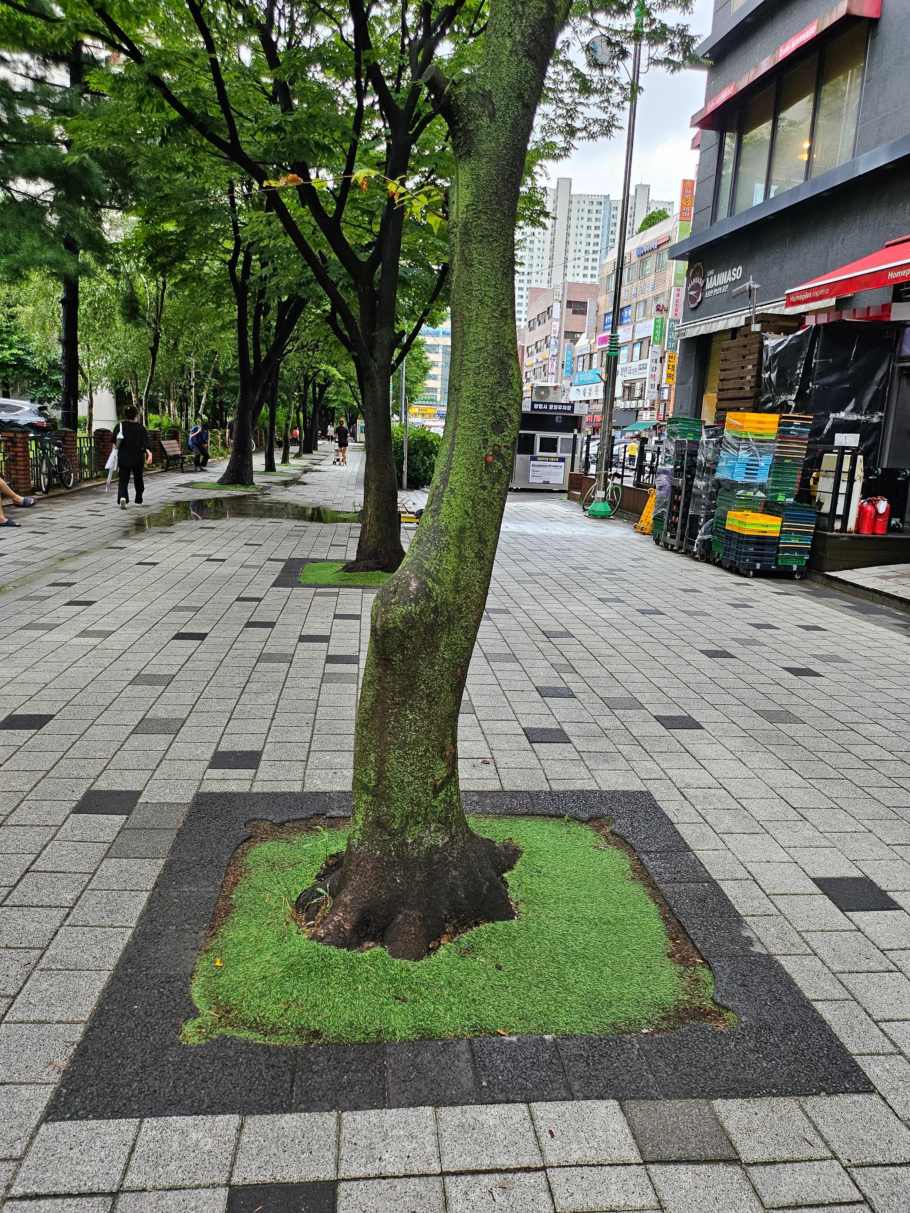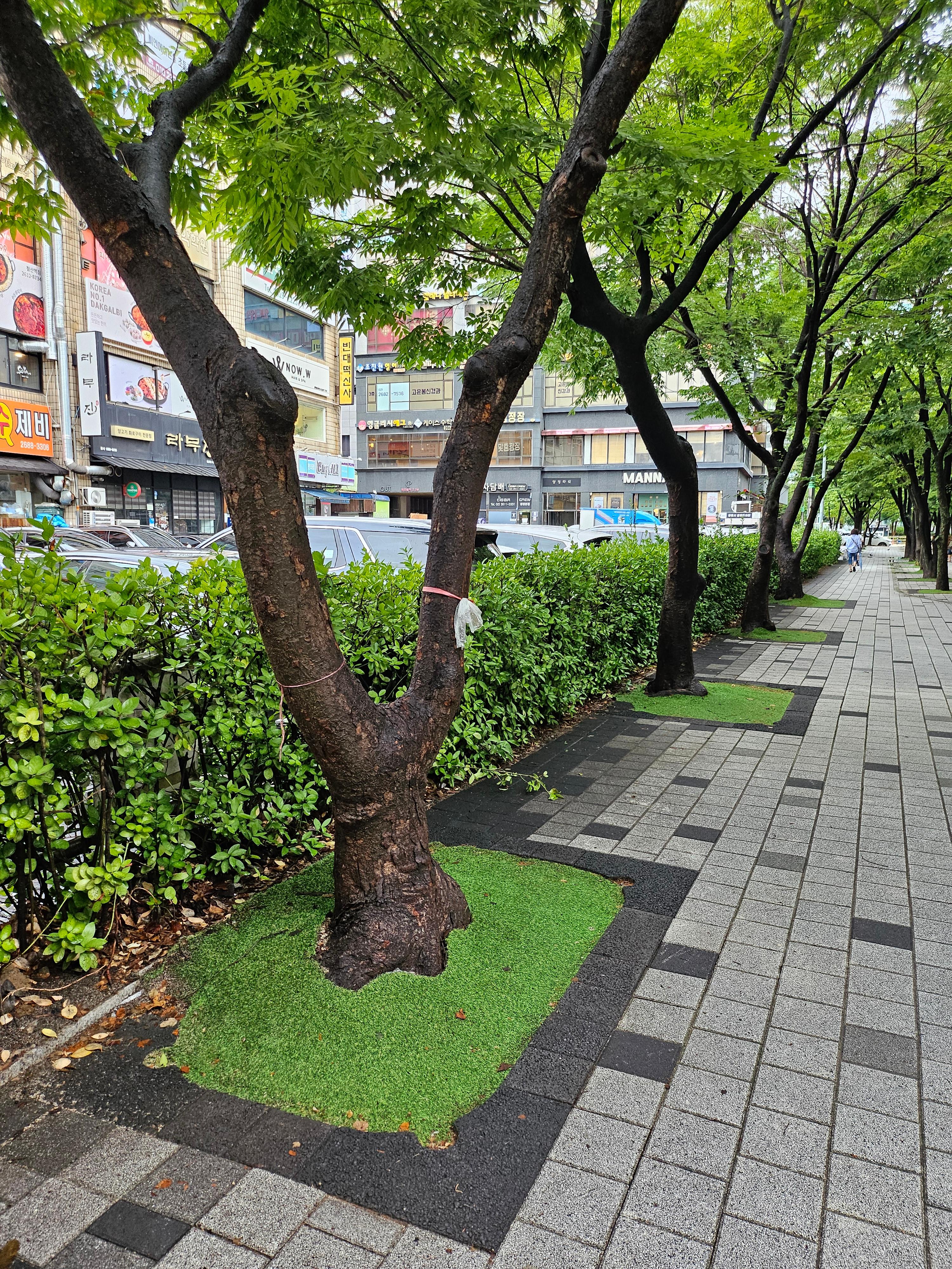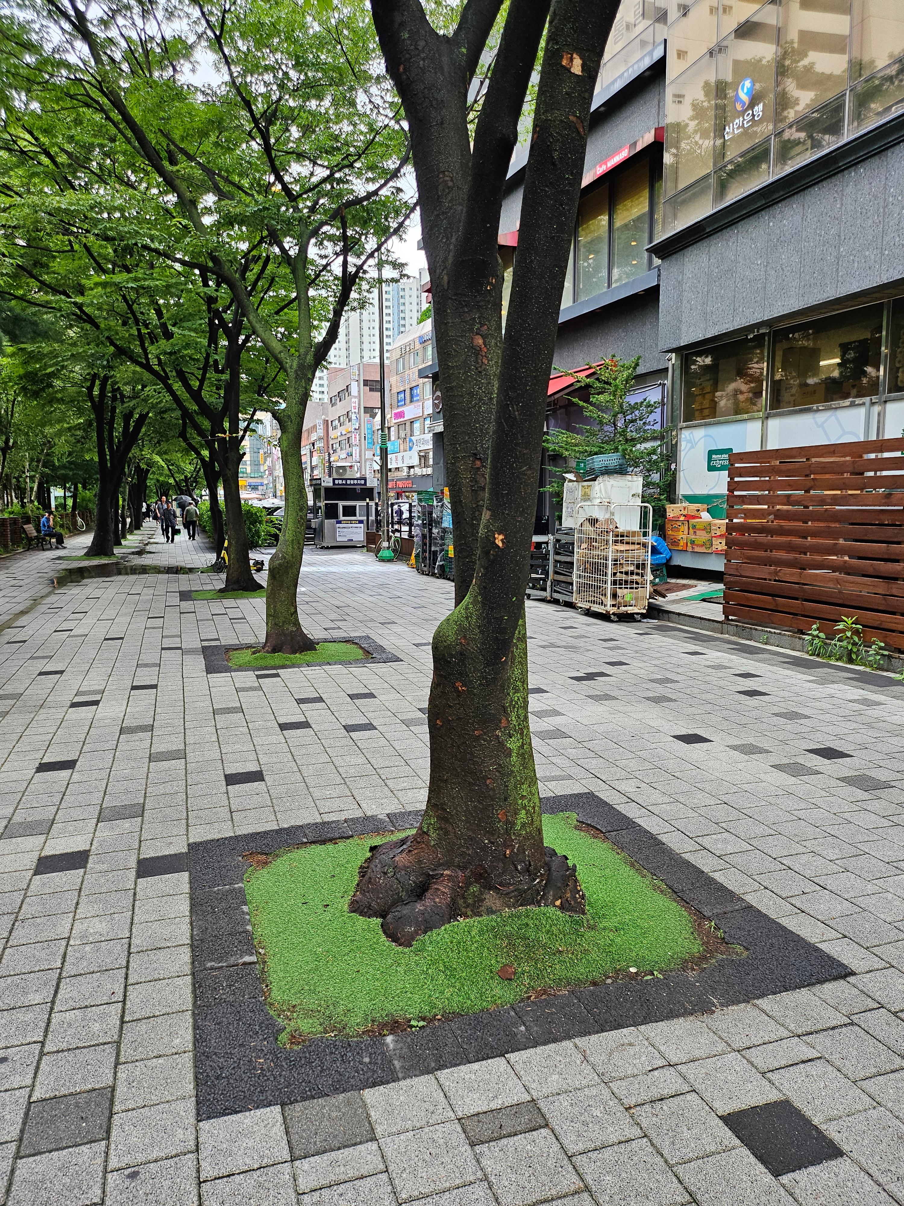 장수가로수 쉼터로(철산동 상가타운) 개선사업 후 가로수정비' 개선공사 후 세월지난 상황 ! ~