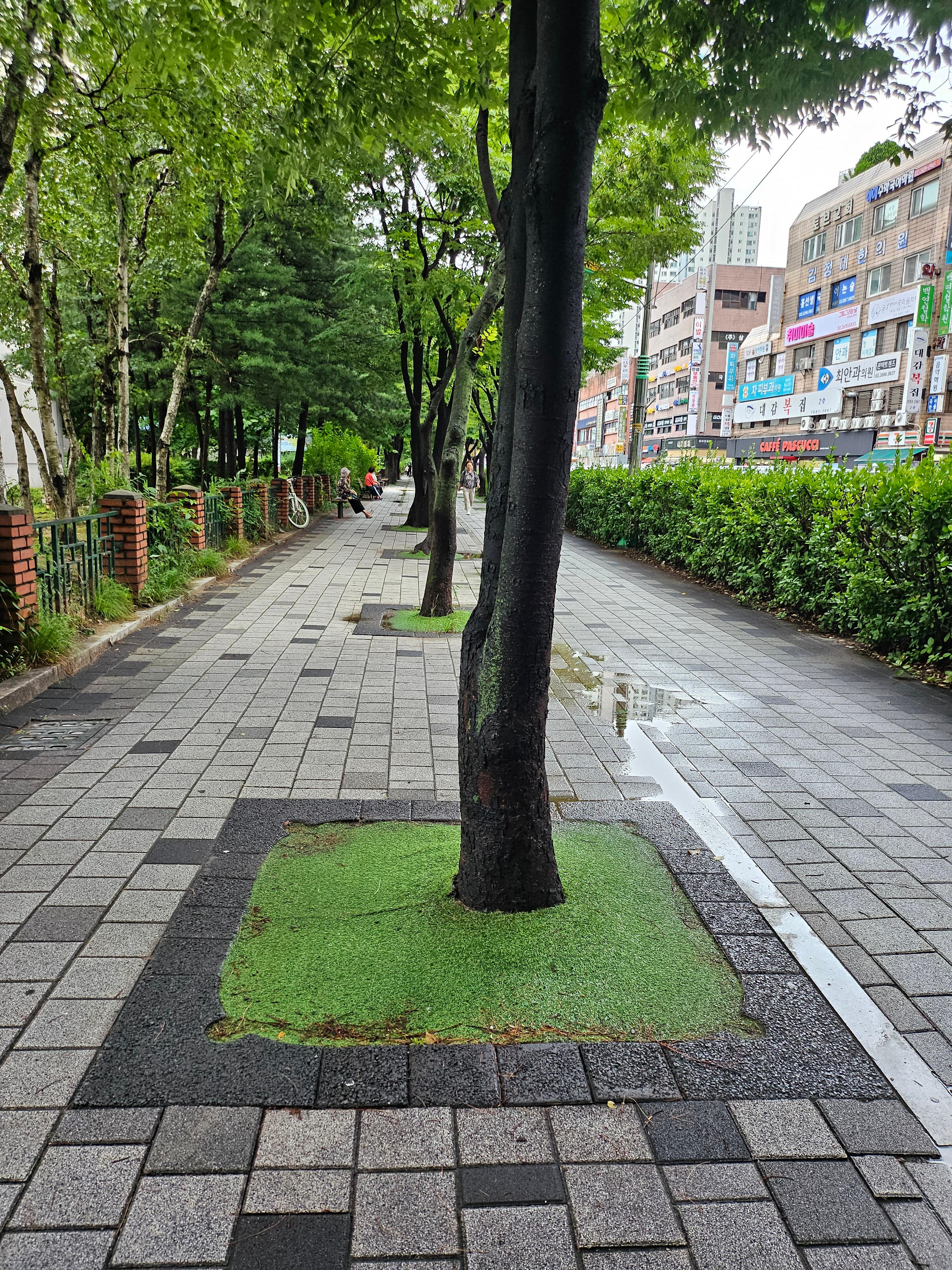 장수가로수길 세월이 흘러 안정된 현장 장마를 맞이한 보행로 길.....